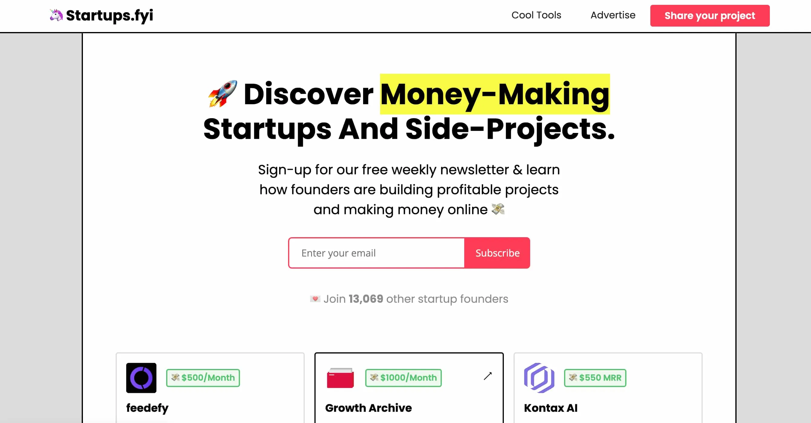 Startups.FYI wird als Ort präsentiert, um Startup-Projekte und profitable Nebenprojekte zu entdecken. Sein kostenloser wöchentlicher Newsletter enthält wertvolle Erkenntnisse über den Aufbau profitabler Projekte und wird zu einer wichtigen Ressource für Gründer, die nach Inspiration und praktischen Tipps für den Online-Erfolg suchen.