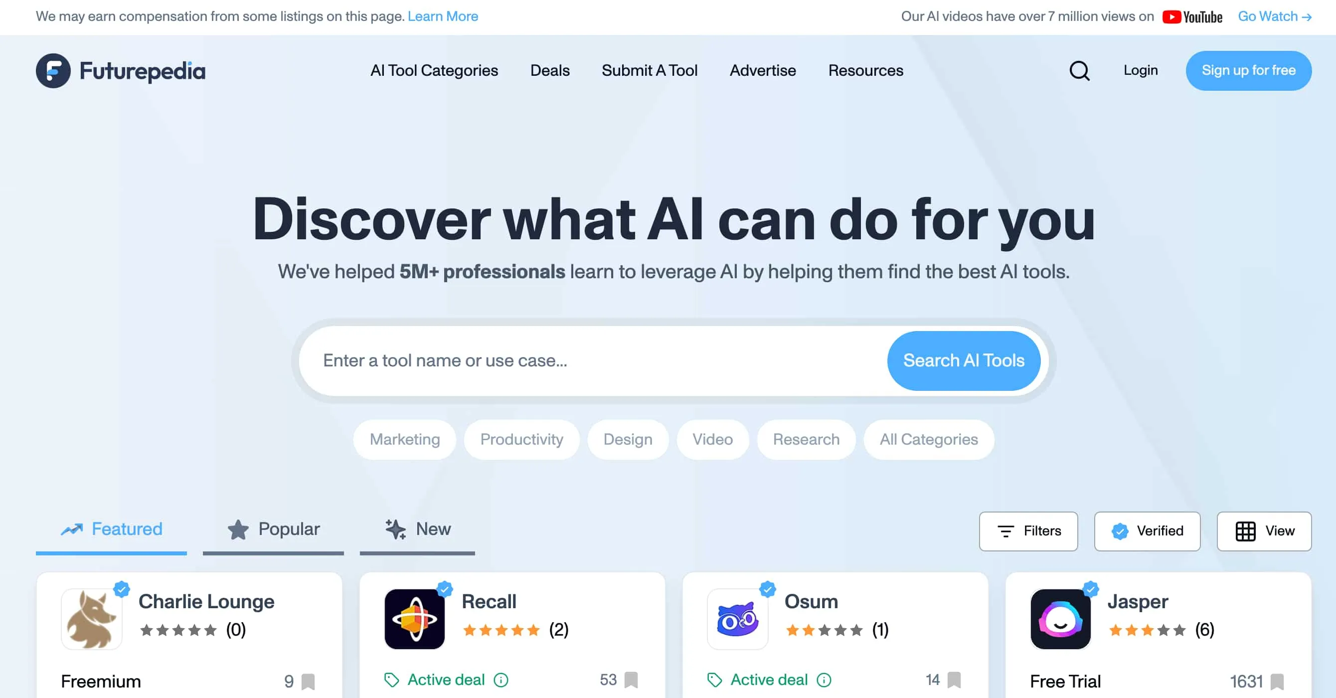Futurepedia ist eine unschätzbare Ressource für Fachleute, die KI in ihre Arbeit integrieren möchten. In weniger als einem Jahr hat diese Plattform über 5 Millionen Menschen geholfen, zu verstehen, wie KI-Technologie ihren Erfolg vorantreiben kann. Futurepedia konzentriert sich auf umfassende Toolanalysen, Anleitungen und Bildungsinhalte zum Thema KI und erleichtert den Zugang zu fundiertem Wissen und einer interaktiven Community von KI-Enthusiasten.
